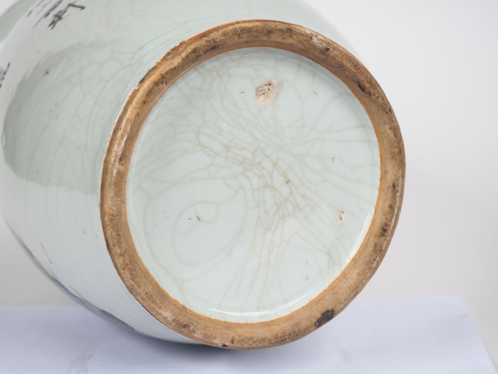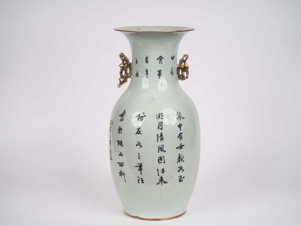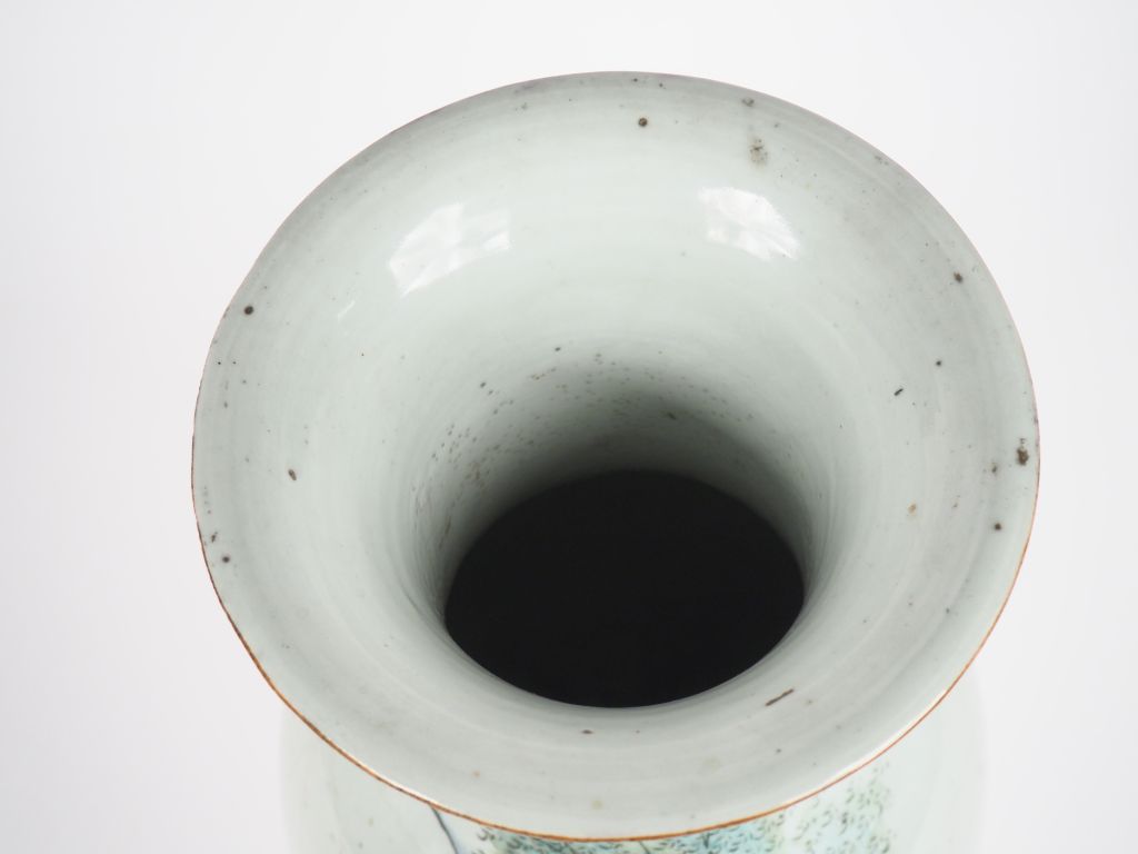 Chine, Xxe siècle, Vase balustre en porcelaine et émaux de style famille rose représentant deux jeunes femmes sur une terrasse arborée de bambou. H. 43 cm