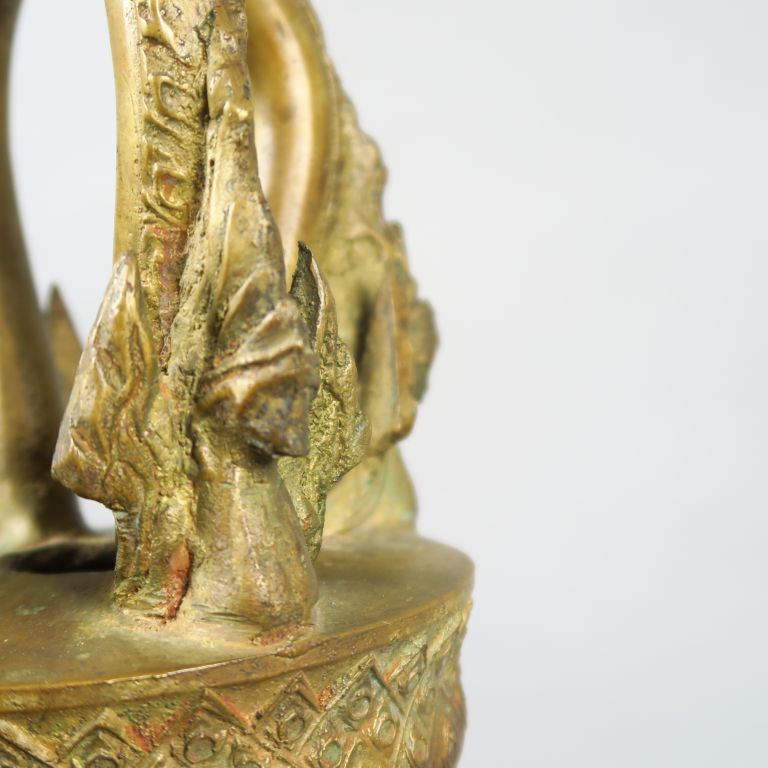 Cloche de temple en bronze dont l'anse est ornée d'oiseaux stylisés Le pourtour à décor de masques d'animaux fantastiques. Birmanie, XIXème siècle. H. 71 cm