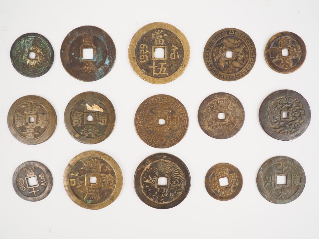 Ensemble de 15 pièces. Canh Thinh, Canh Hung Thong Bao, Tu duc Thong Bao. Vietnam, XVIIIème et XIXème siècles.