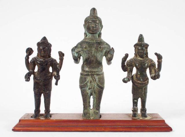 Ensemble de trois bronzes représentant la divinité Vishnu. XVIème et XVIIème H. : 8,5 et 11,5 cm