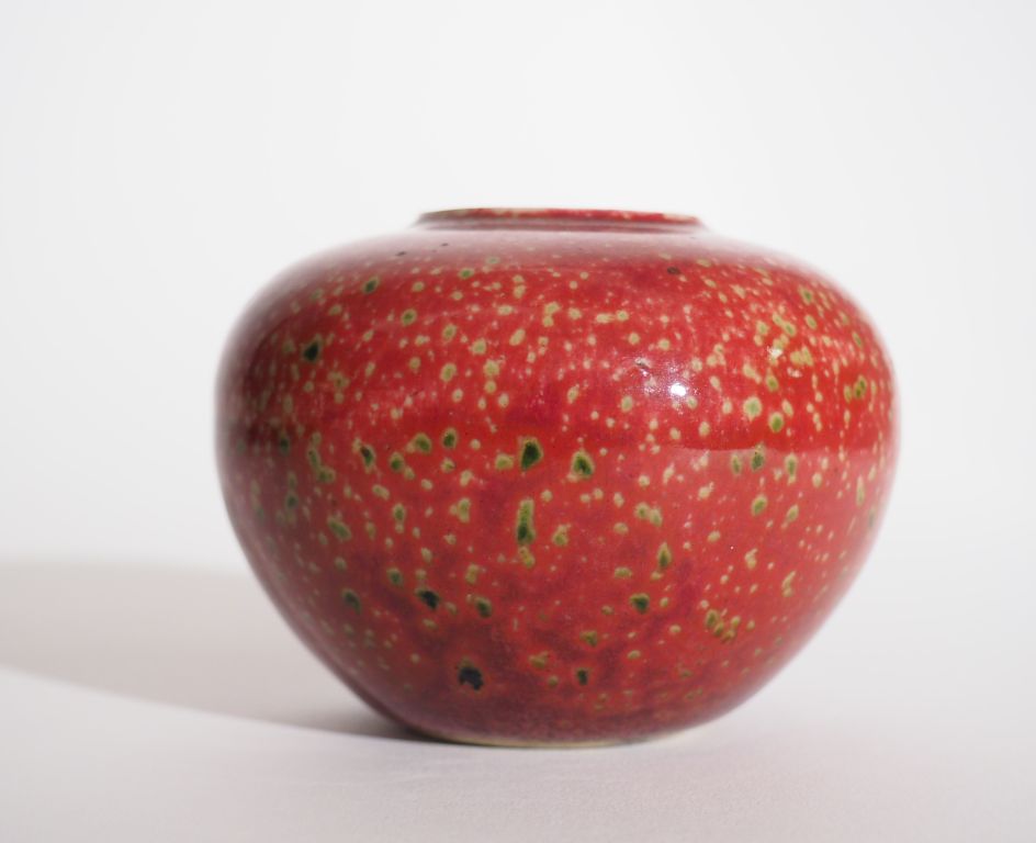 Godet de peintre en porcelaine et émail sang de bœuf reposant sur un fond céladon. Chine, marque Kangxi en Kaishu. H. 6,9 cm Diam. 8,7 cm