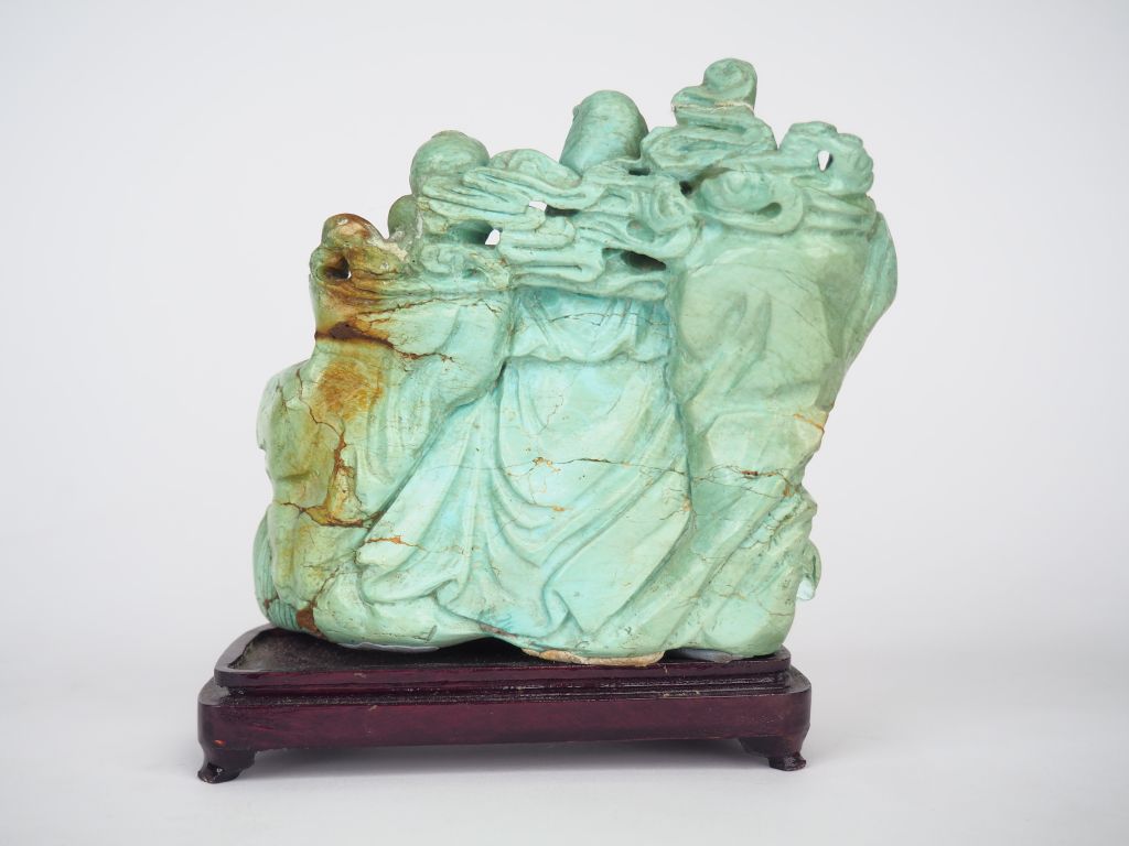 Groupe en résine à l'imitation de la turquoise Guanyin Chine vers 1950 H. 13 cm
