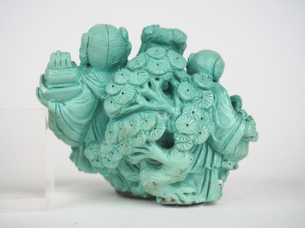 Groupe en résine à l'imitation de la turquoise "jeune femme accompagnée de leurs servants" Chine vers 1960 H. 9 cm
