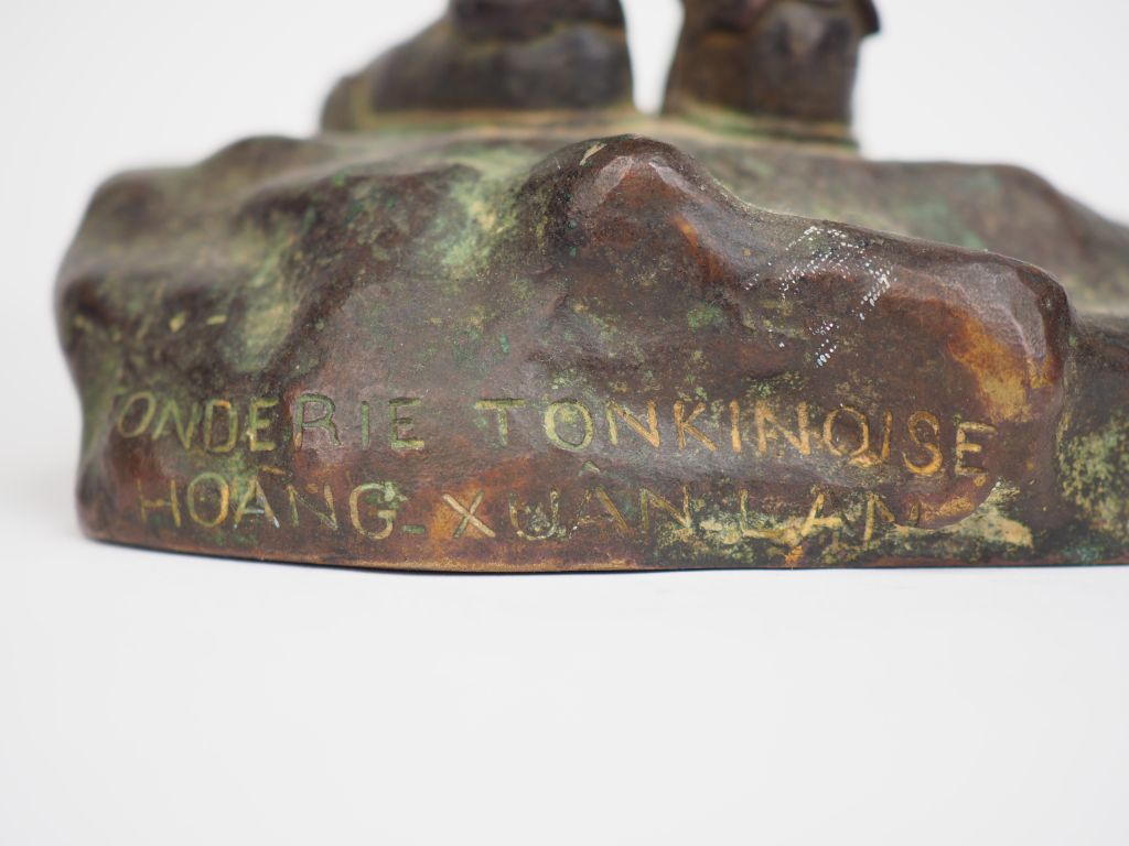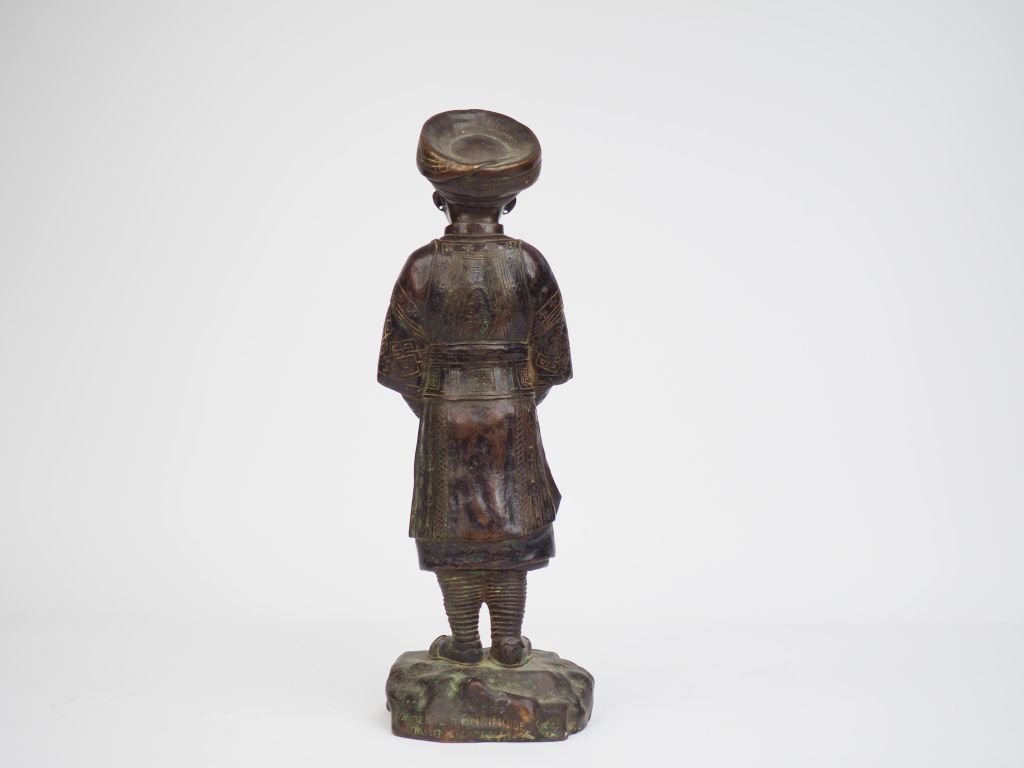 HOANG XUAN LAN Statuette en bronze, représentant un personnage du Nord de l'Indochine en habits richement décorés. Fonderie tonkinoise. Signée. H. 35 cm
