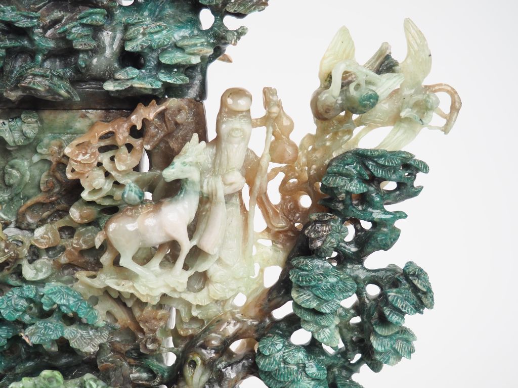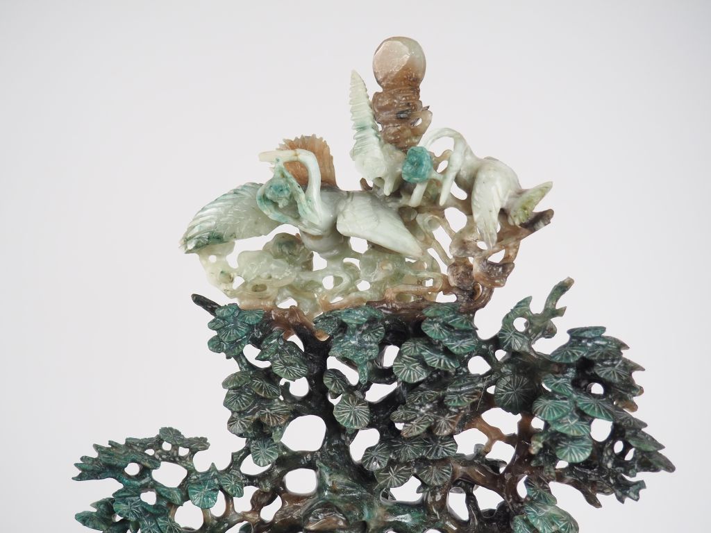 Important vase couvert en serpentine à décor d'animaux volatiles parmi des pins de longévité Chine vers 1960 H. 71 cm (manques et accidents)