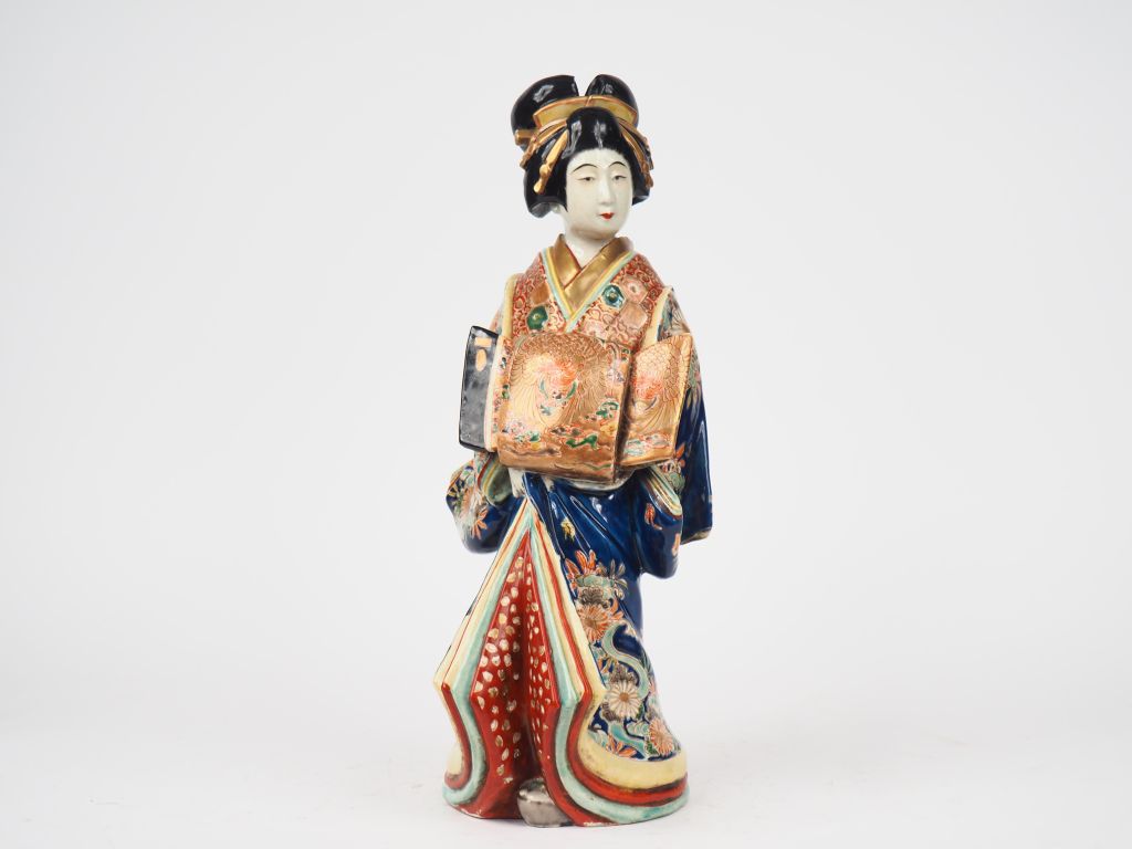 Japon, période Taisho, Importante statue en porcelaine de Kutani représentant une Geisha en tenue de cérémonie. H. 42 cm