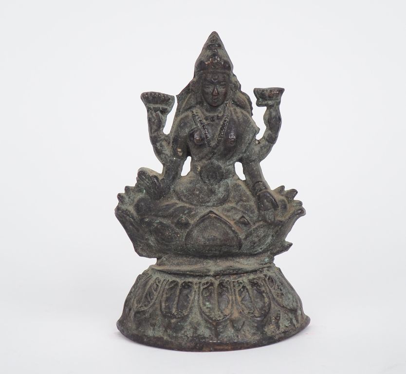 Java (?), Sujet en bronze représentant possiblement la divinité Shiva à quatre bras sur un lotus H. 15 cm