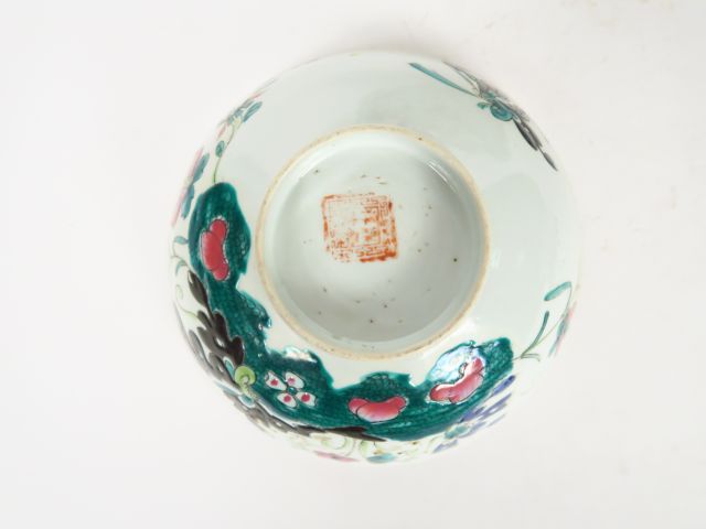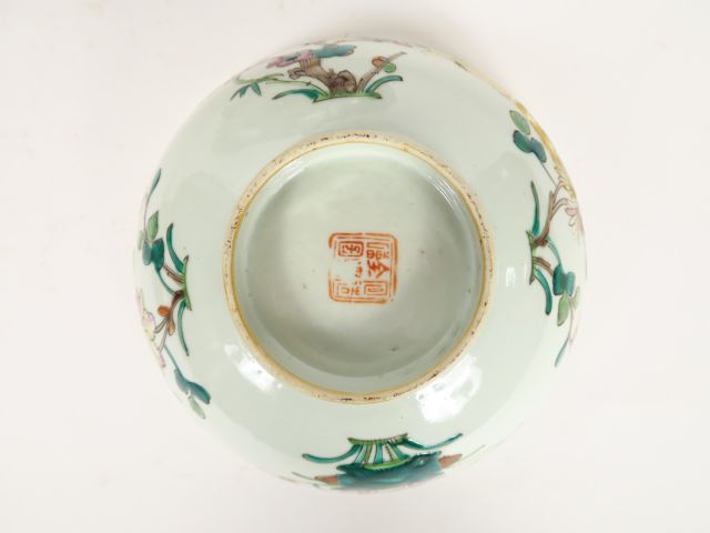Lot comprenant deux coupes et un ravier à bord polylobé en porcelaine de la famille rose, décor de scènes de personnages et compositions florales. Chine, fin du XIXème siècle. Diam. 18,5 et 27,5 cm