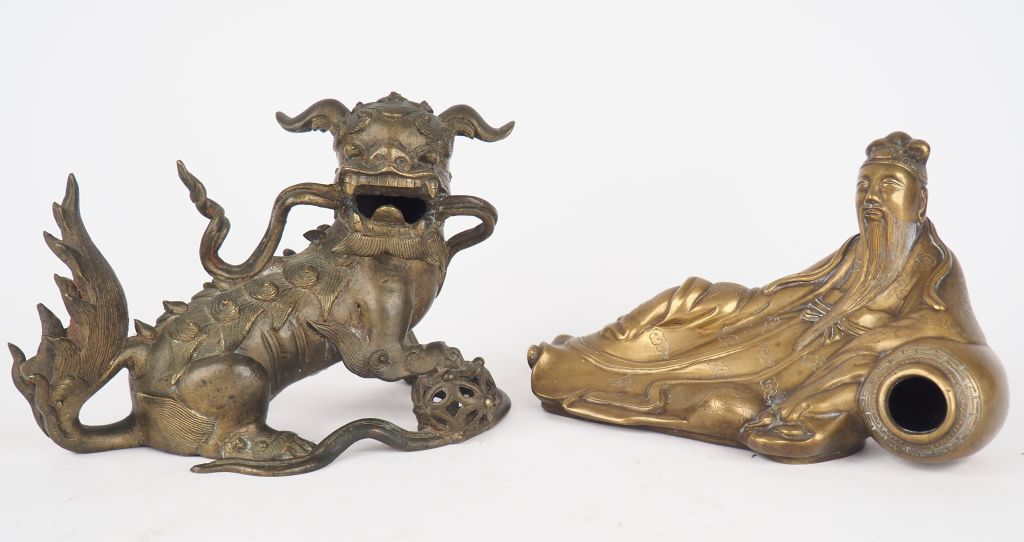 Lot comprenant deux sujets en bronze l'un représentant Libai l'autre figurant un chien de Fo Chine du Sud vers 1900