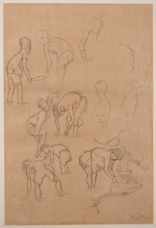 Louis Robert BATE (1898-1948, grand prix de l'Indochine en 1938). "Culture du riz dans le Haut-Tonkin". Dessin au crayon noir signé en bas à droite. Dim. 37,5 x 25,5 cm.