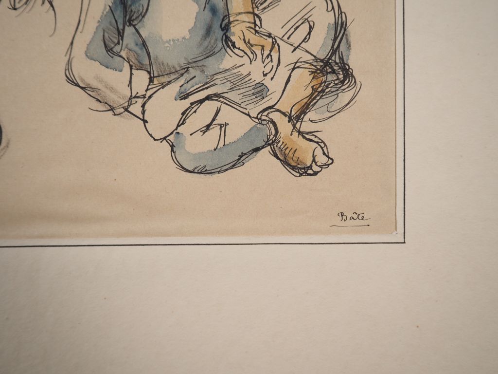 Louis Robert BATE (1898-1948, grand prix de l'Indochine en 1938). "Enfants chinois" Encre et aquarelle sur papier signée en bas à droite. Dim. 13 x 20 cm.