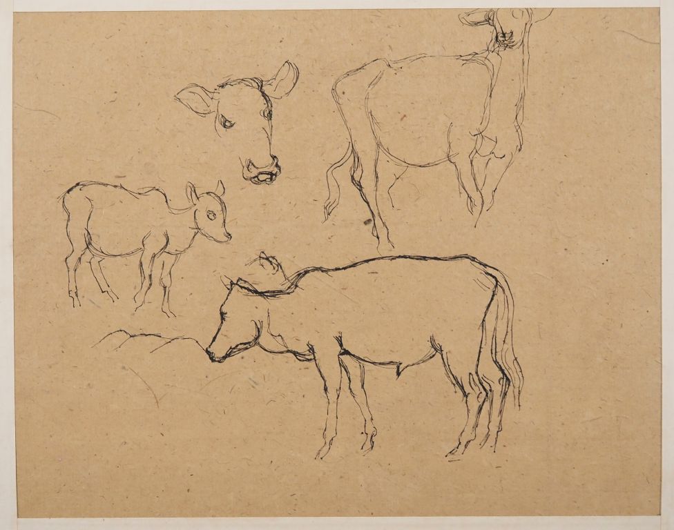 Louis Robert BATE (1898-1948, grand prix de l'Indochine en 1938). "Etude de veau". Encre sur papier. Dim. 21,5 x 27 cm.