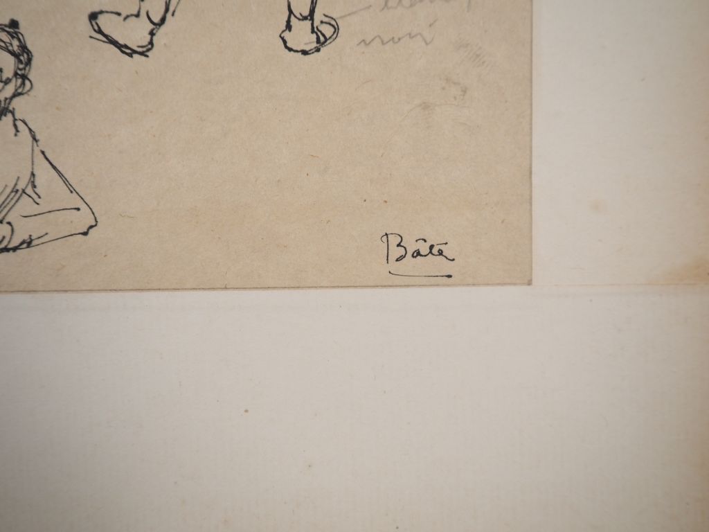 Louis Robert BATE (1898-1948, grand prix de l'Indochine en 1938). "Etude de personnages chinois". Encre et couleurs sur papier signée en bas à droite, située et datée 1940 en bas à gauche. Dim. 30 x 22,5 cm.