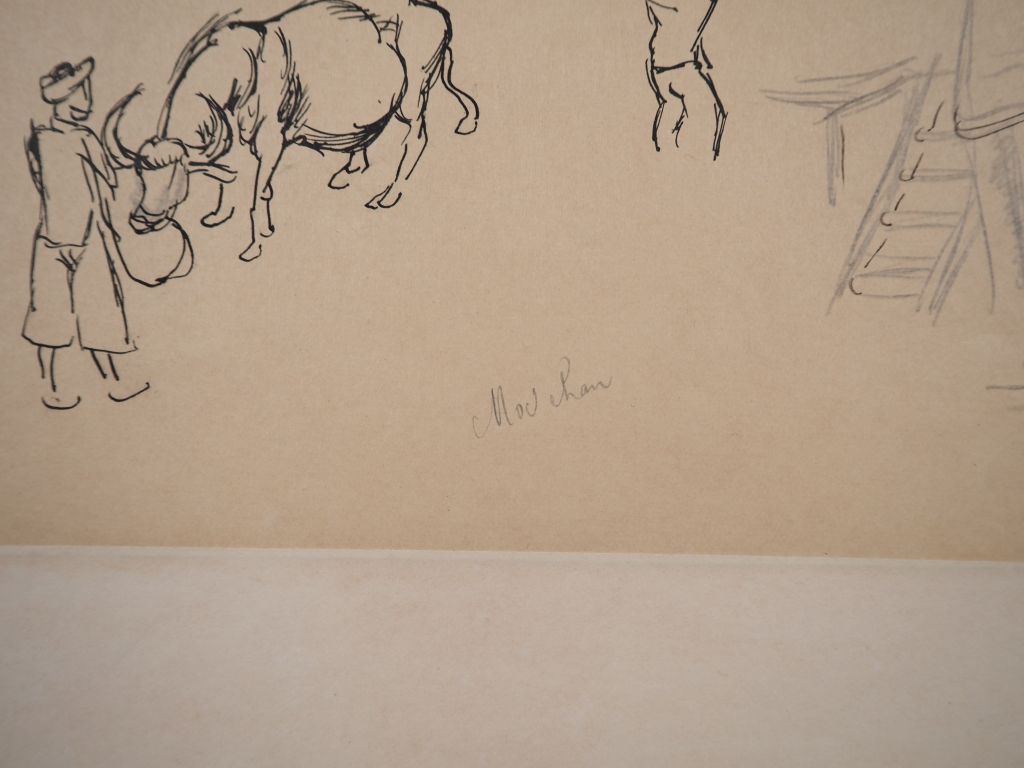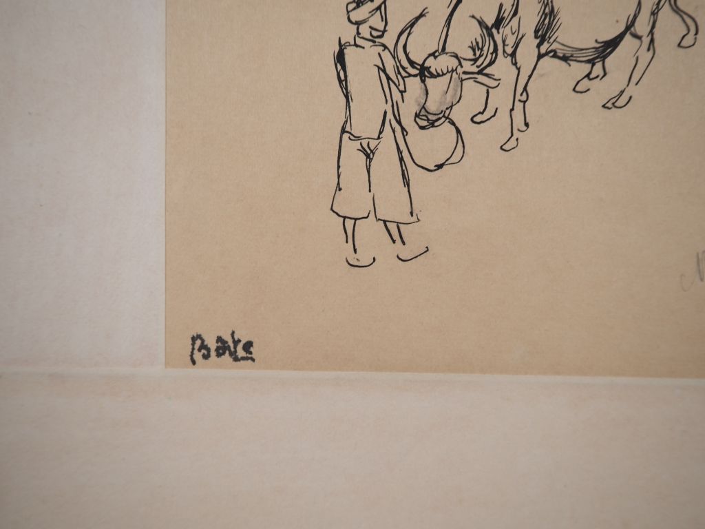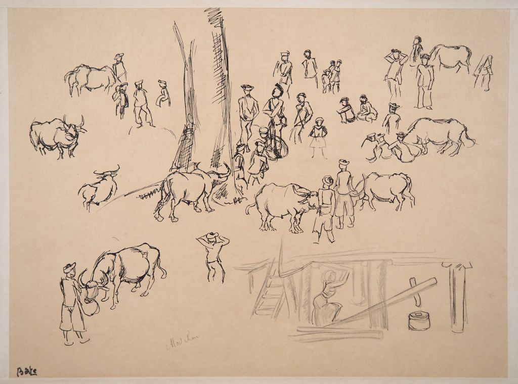 Louis Robert BATE (1898-1948, grand prix de l'Indochine en 1938). "Habitants de Moc Chau" Encre sur papier signée en bas à gauche. Dim. 21 x 28 cm.