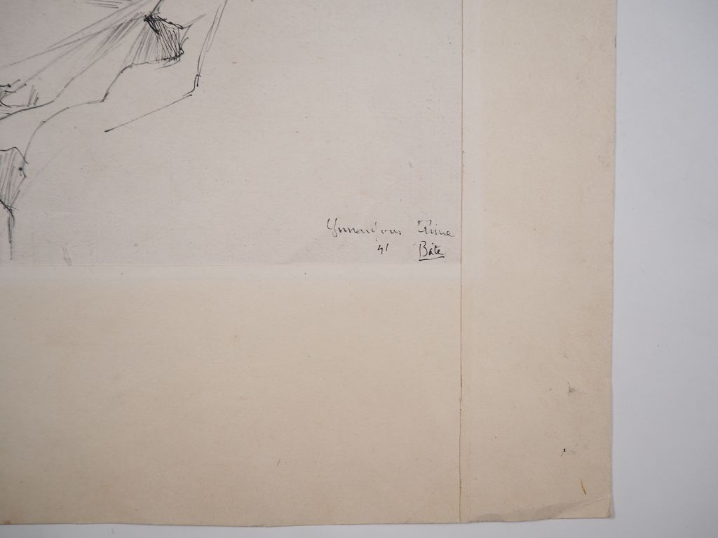 Louis Robert BATE (1898-1948, grand prix de l'Indochine en 1938). "Pagodes dans la montagne chinoise". Dessin à l'encre de Chine situé en bas à droite et daté 1941. Dim. 58 x 44 cm.