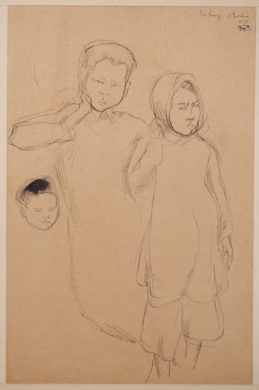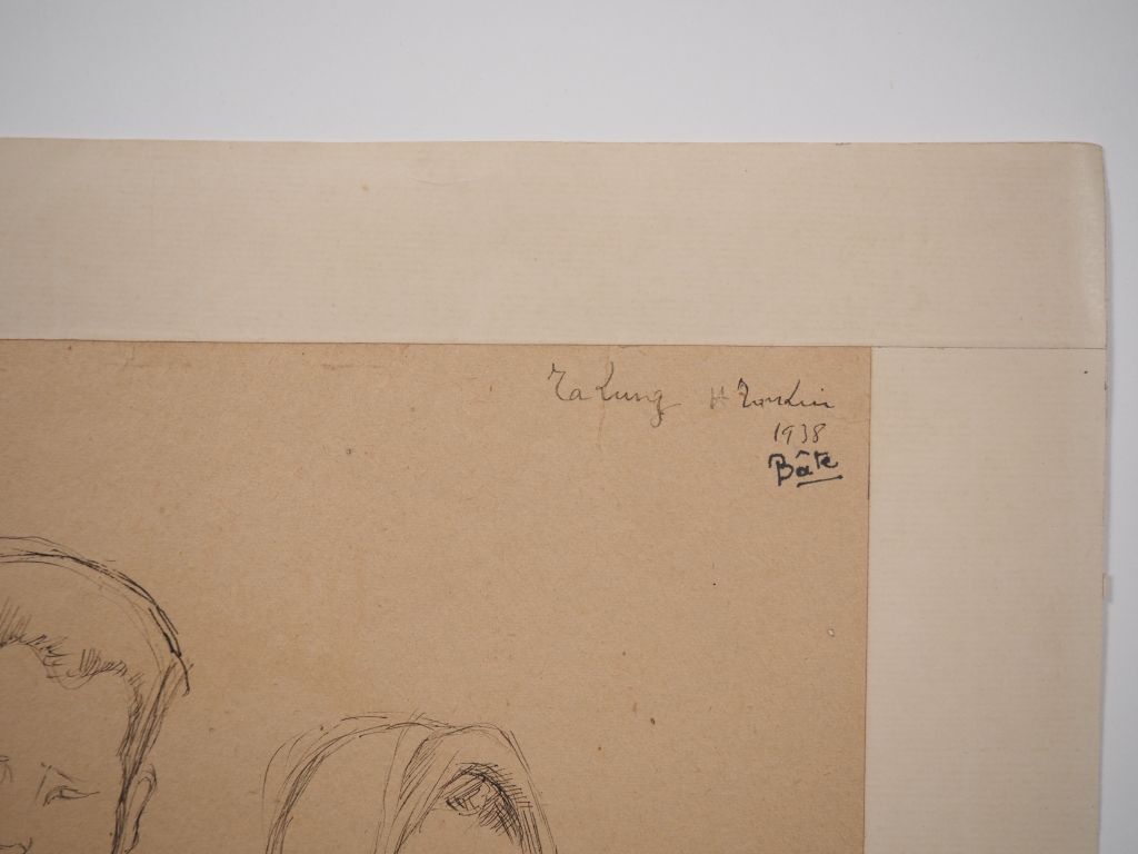 Louis Robert BATE (1898-1948, grand prix de l'Indochine en 1938). "Portrait de Tonkinois". Encre signée, datée 1938 et située à Ma Lung en haut à droite. Dim. 38 x 24,5 cm.