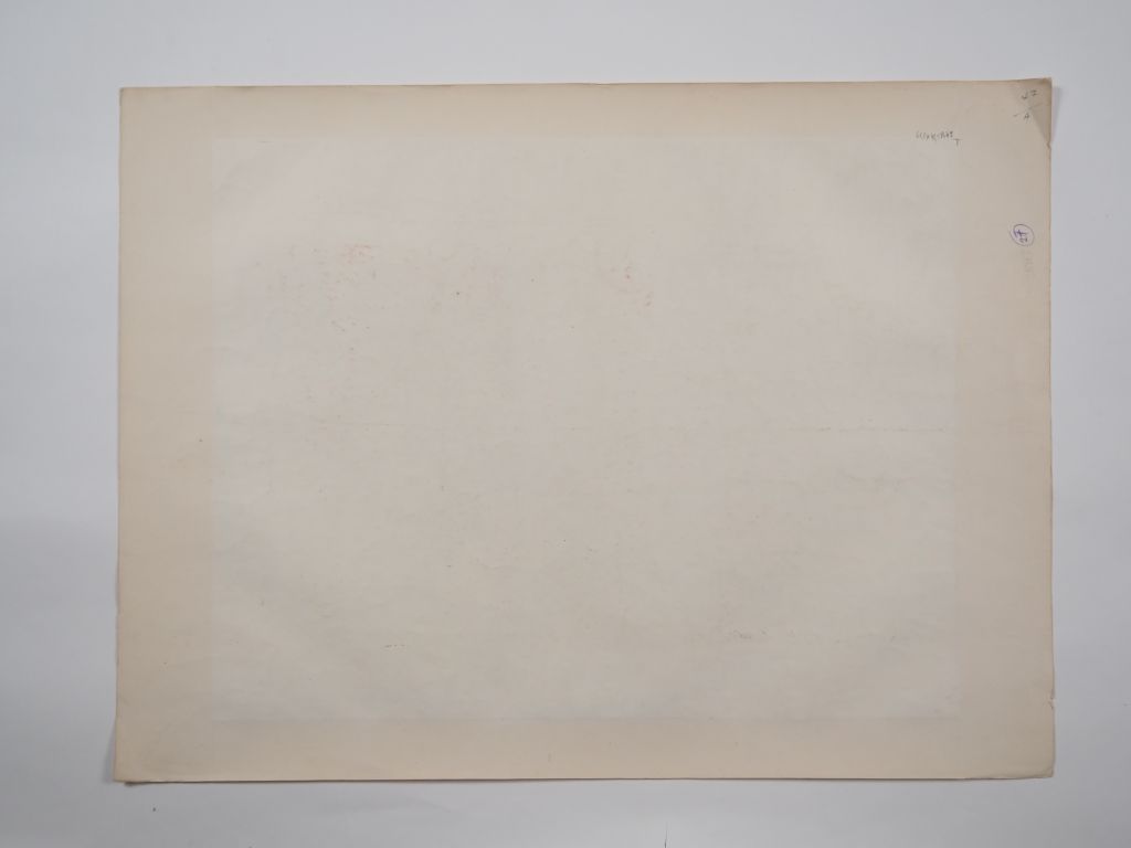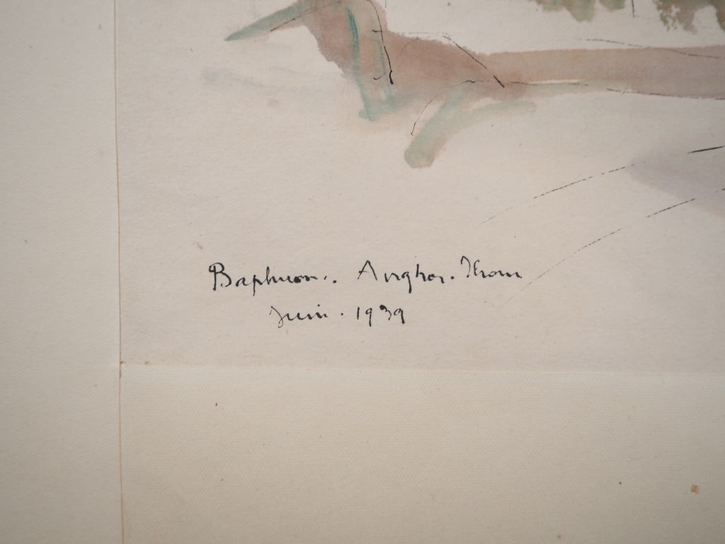 Louis Robert BATE (1898-1948, grand prix de l'Indochine en 1938). "Vue d'Angkor Thom, Angkor". Encre et couleur sur papier, signée et située en bas à droite, datée 1939. Dim. 48,5 x 62 cm.