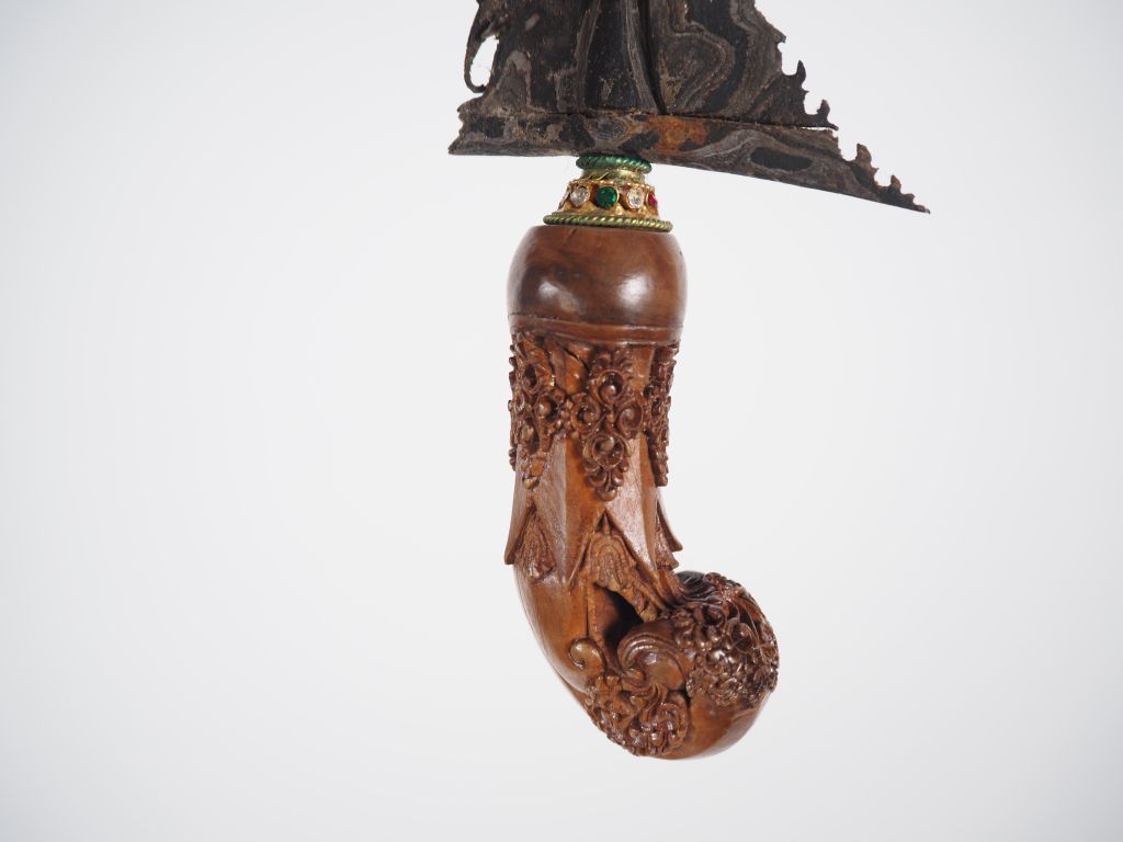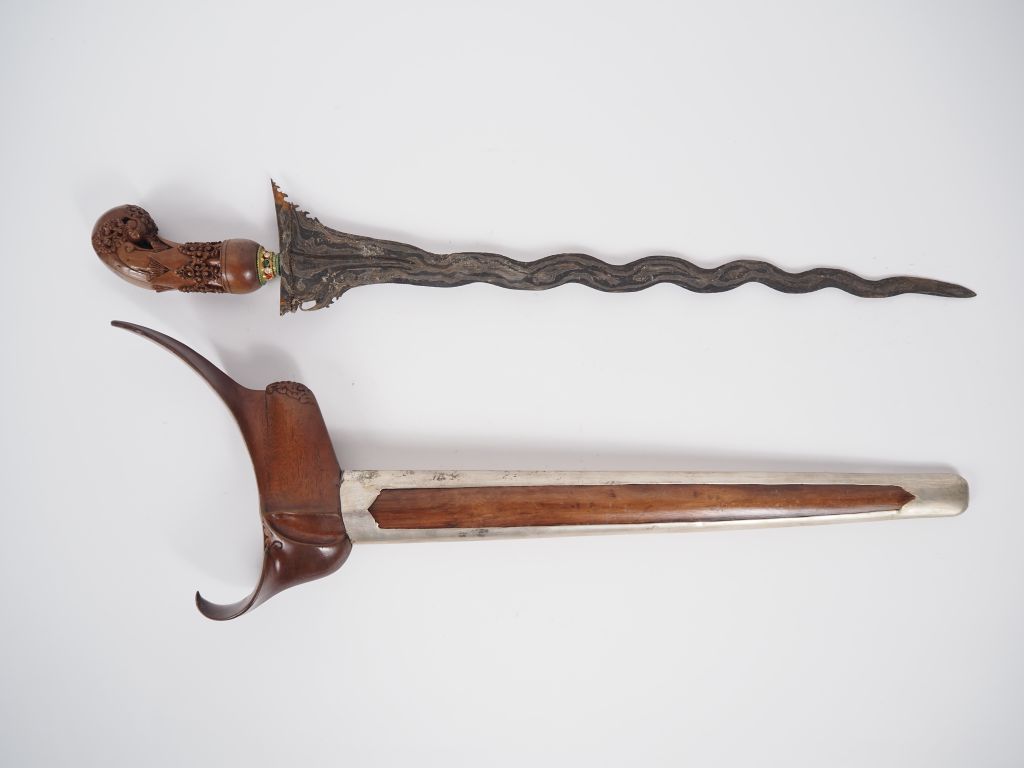 Malaisie, fin XIXe-début Xxe Poignard dit « kriss » la poignée et le warangka en bois L. 49 cm.