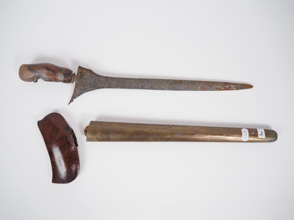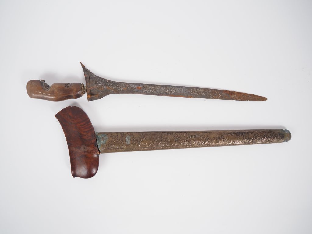 Malaisie, fin XIXe-début Xxe Poignard dit « kriss » la poignée et le warangka en bois L. 51 cm.