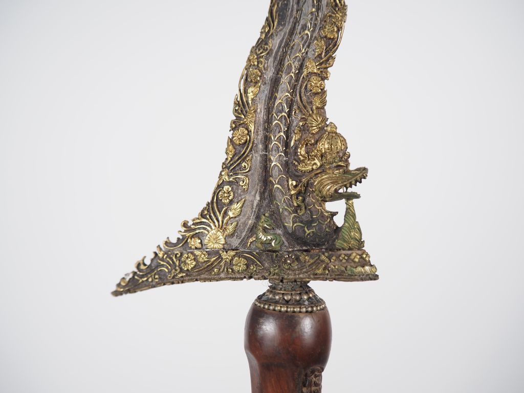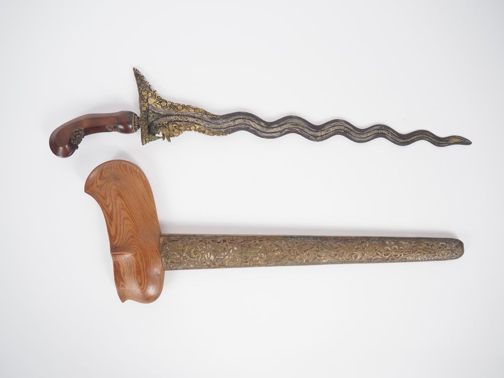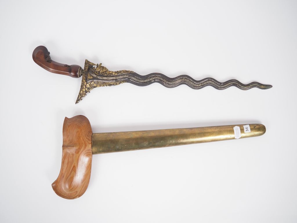 Malaisie, fin XIXe-début Xxe Poignard dit « kriss » la poignée et le warangka en bois L. 51 cm.