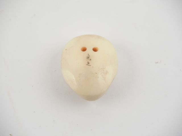 Netsuké en ivoire du Japon fin XIXème début XXème figurant un masque du théatre de No, signés