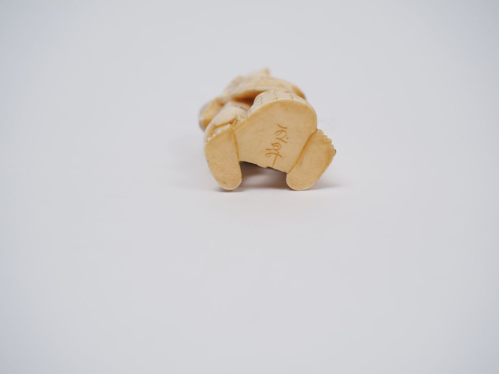 Okimono en ivoire marin représentant un pêcheur au cormoran. Japon, vers 1930. H. 9 cm