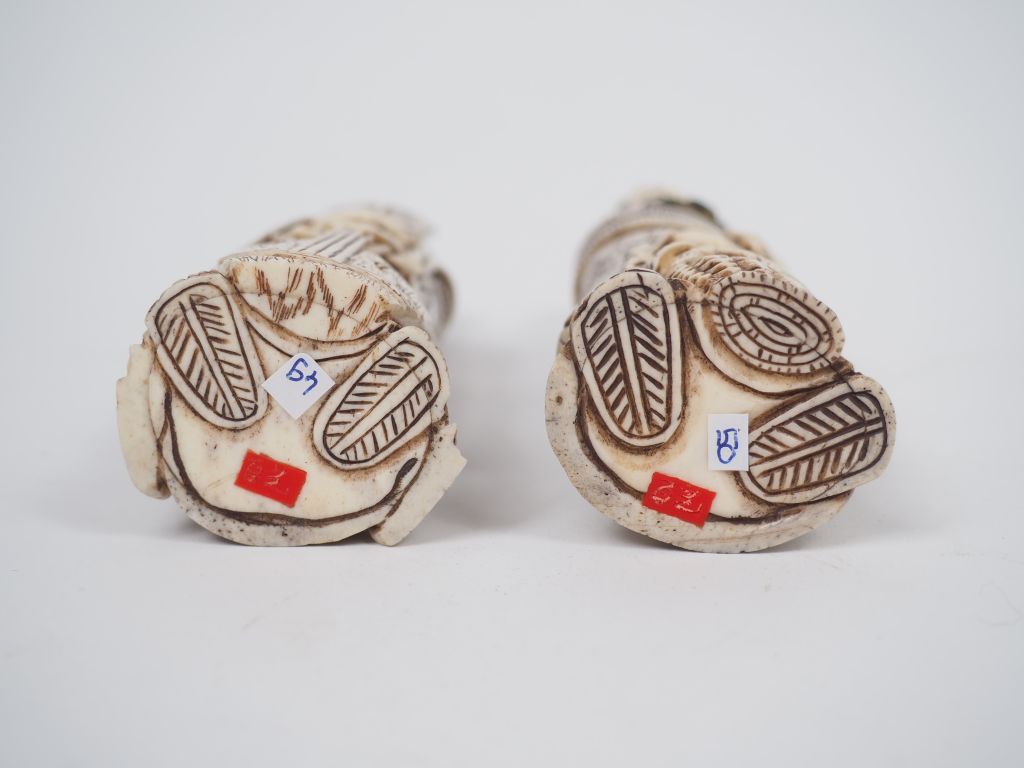 Lot de Paire de sujets en os formant tabatières "Couple de dignitaires" H. 15 au prix de 60 à 80 € en vente aux enchères par l'hôtel des ventes Primardeco