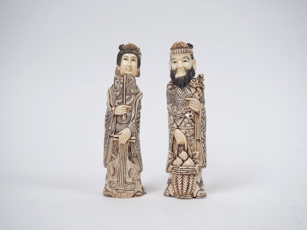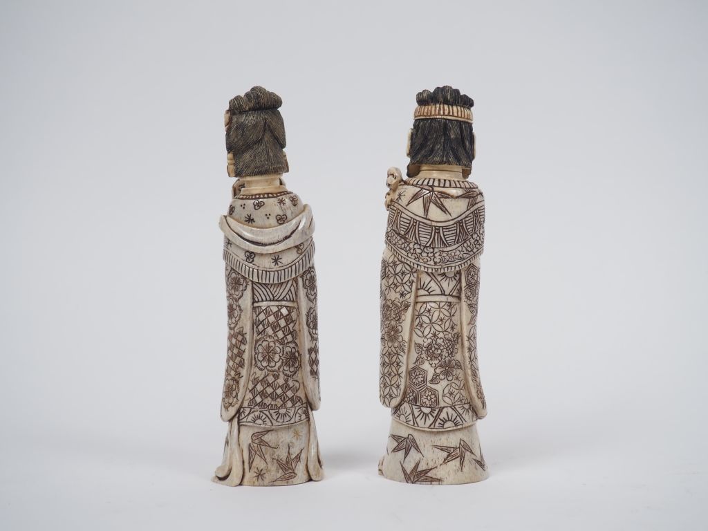 Paire de sujets en os formant tabatières "Couple de dignitaires" H. 15 cm