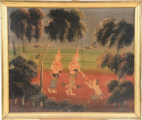 Peinture sur toile 'Ramayana'. Siam. Rattanakosin. Deuxième moitié du XIXème. Dim. 49 x 58 cm
