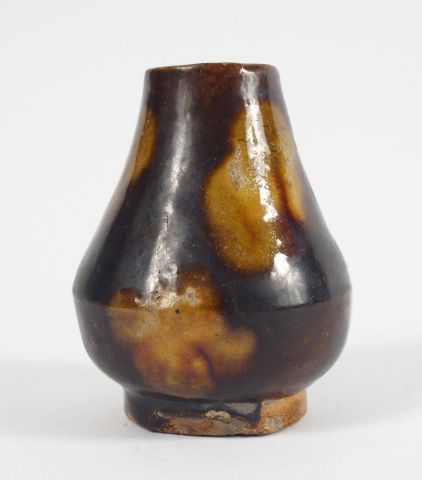 Petit vase Hu en céramique et émail brun beige. Chine époque Tang. H. : 7,5 cm (éclat de cuisson)
