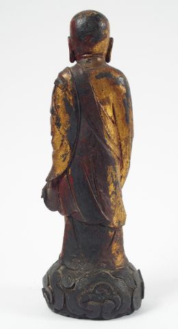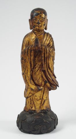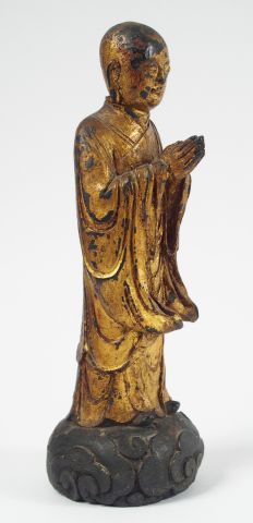 Statuette en bronze laqué et partiellement doré, représentant Lohan en méditation sur les nuages. Chine XVIIème siècle, fin de la période Ming. H. : 28 cm
