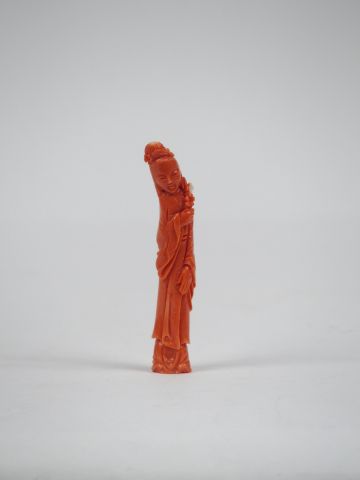 Statuette en corail représentant une déesse du printemps. Chine Xxème siècle. H. : 9,9 cm