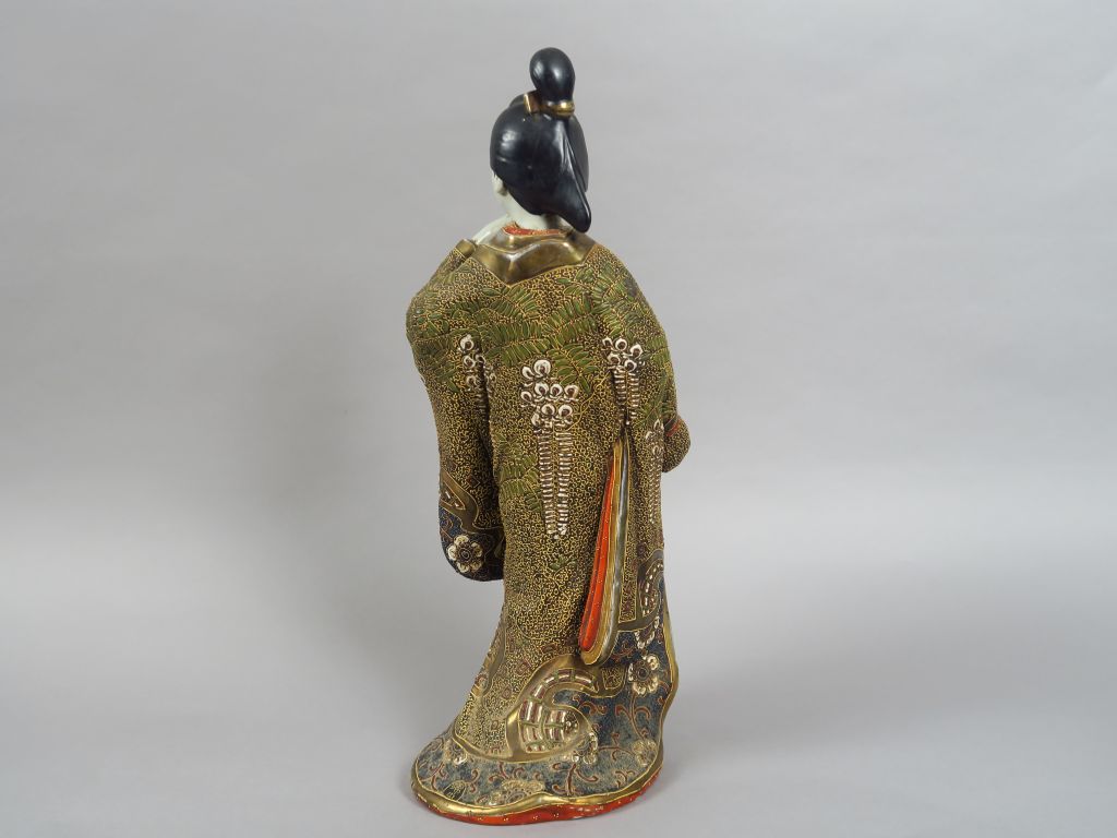 Statuette en porcelaine de Satsuma représentant une jeune femme en habit de cérémonie. Japon, vers 1900. H. 44 cm