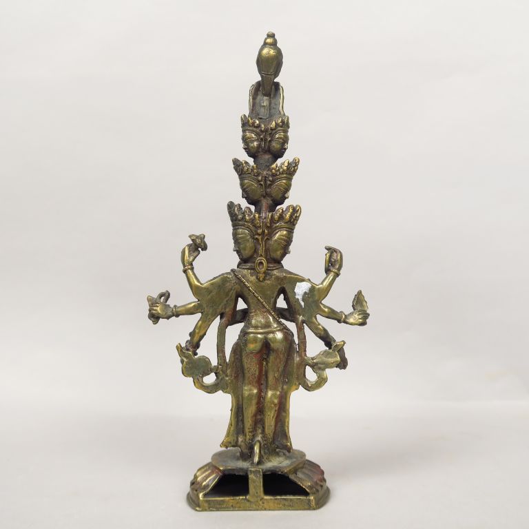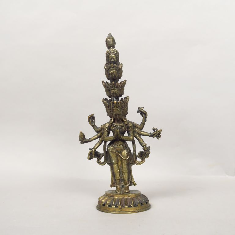 Sujet en alliage de cuivre représentant Aryâvalokiteshvara à onze têtes et huit bras. Népal, XIXème siècle. H. 28,5 cm