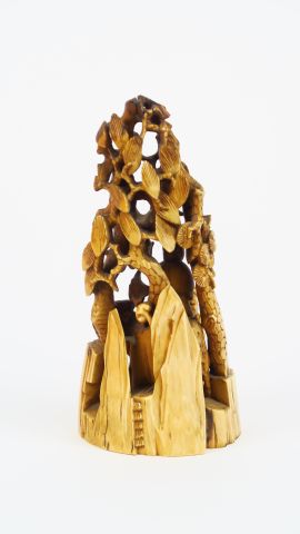 Sujet en ivoire "Scène de prière sous un arbre". Chine, vers 1900. H. 17 cm Poids : 323 g Nom scientifique de l’ivoire : ivoire d’éléphant Elephantidae spp (I/A, pré-convention), spécimen antérieur au 1er juin 1947 et conforme à la réglementation CE 338/97 du 09/12/1996, art. 2-W mc. Pour une sortie de L’UE, un CITES de ré-export sera nécessaire, celui-ci étant à la charge de l’acquéreur.