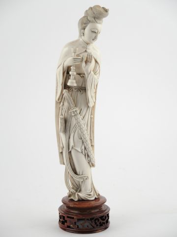 Sujet en ivoire sculpté 'Jeune femme au sabre. Chine pré-convention. H. 31 cm