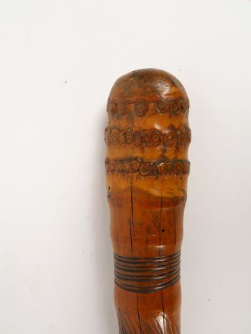 Lot de Une canne en bois sculpté au prix de 200 à 300 € en vente aux enchères par l'hôtel des ventes Primardeco