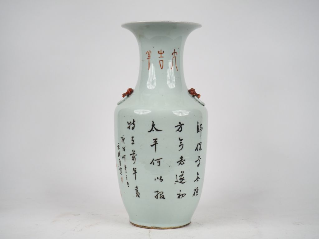 Vase balustre en porcelaine décor émaillé en grisaille et corail de lions boudhiques Chine vers 1880 H. 44,5 cm