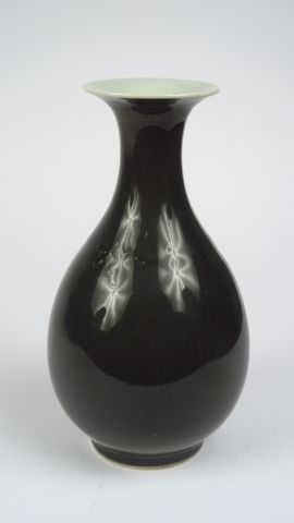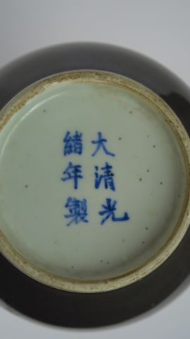 Vase bouteille en porcelaine à couverte foie de mulet, marque apocryphe à six caractères. Chine, dynastie Qing. Règne de Guanzu. H. 23 cm 300/500