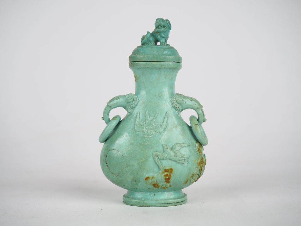 Vase piriforme en turquoise à décor d'oiseaux Chine vers 1960 H. 11 cm Poids : 123 g