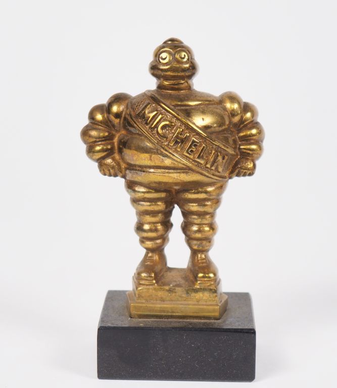 Lot de MICHELIN. Bibendum, sujet en bronze doré sur un socle en marbre noir. au prix de 20 à 30 € en vente aux enchères par l'hôtel des ventes Primardeco