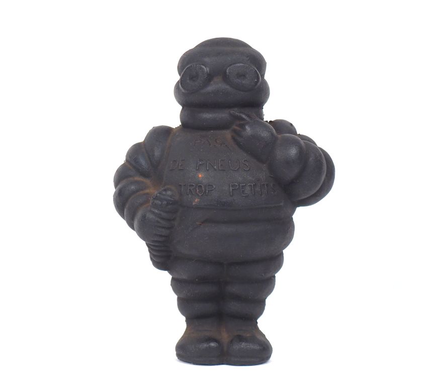 Lot de MICHELIN. Bibendum, sujet en caoutchouc noir circa 1950-60 H. 15 cm. au prix de 30 à 40 € en vente aux enchères par l'hôtel des ventes Primardeco