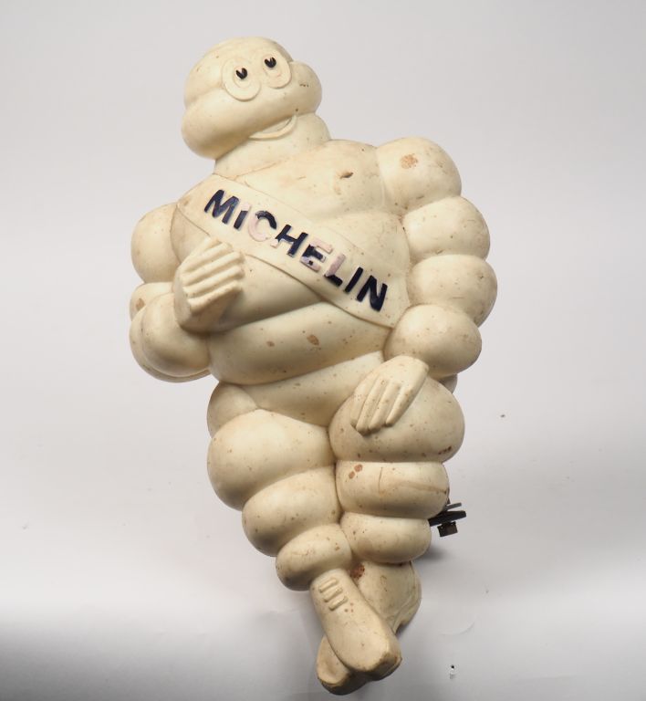 MICHELIN. 'Bidendum de camion". Sujet en plastique avec système de fixation. Dim. 47 x 27 cm. (sauts de polychromie)