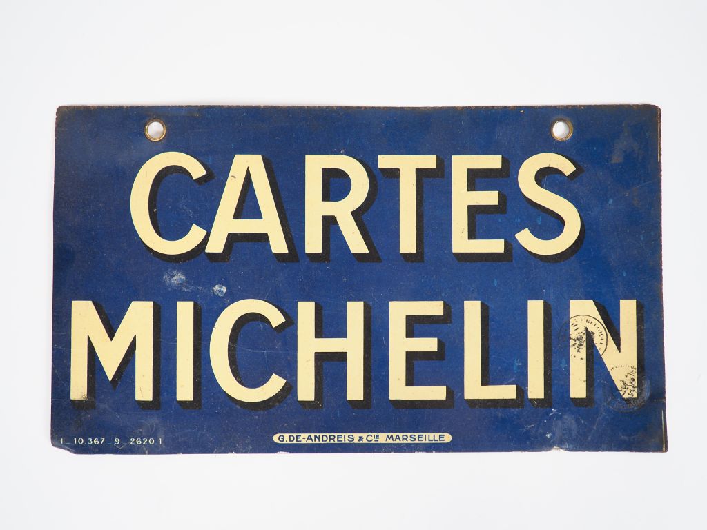 MICHELIN. "Cartes Michelin" Plaque en tôle lithographiée. Dim. 19,6 x 34,5 cm. (petits accidents)
