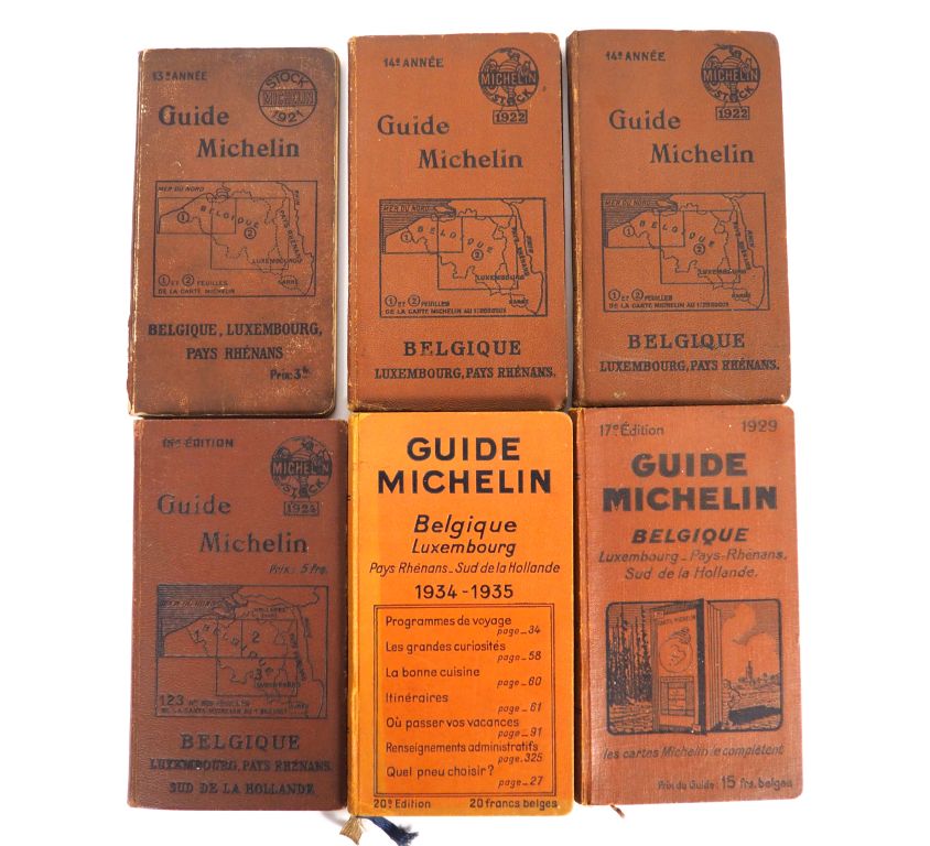 MICHELIN. Guides Bénélux 1921, 1922 ( x 2 ), 1924, 1929, 1934-1935, 1986, 2004, 2005, 2006 et 2009 ( x 2 ). (état d'usage)