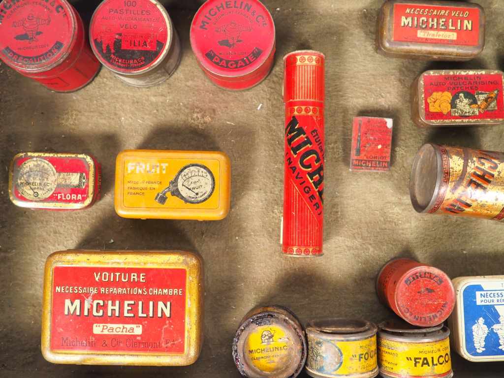 Lot de MICHELIN. Lot de 30 différentes boîtes publicitaires en tole lithograp au prix de 50 à 60 € en vente aux enchères par l'hôtel des ventes Primardeco