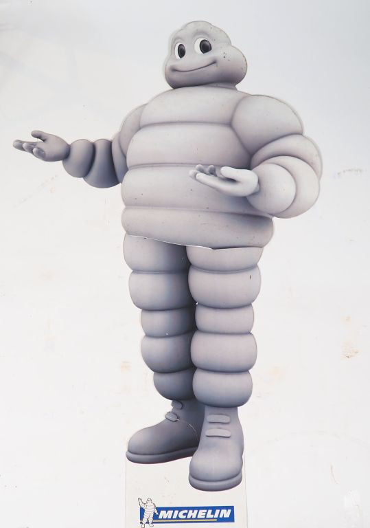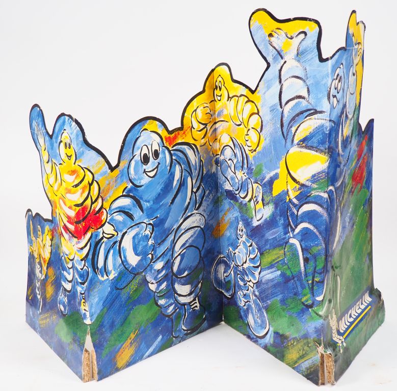 MICHELIN. Lot de deux éléments publicitaires en carton. Dim.153 x 93 cm et 88 x 200 cm. (accidents et manques)
