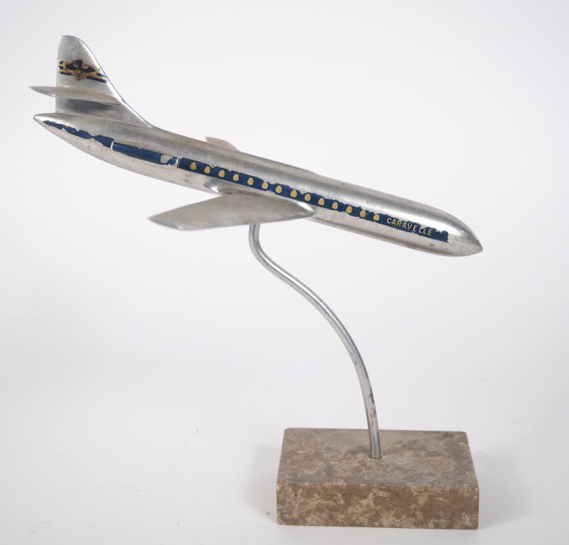 Lot de Avion bureau en métal chromé et marbre. "Caravelle" au prix de 40 à 50 € en vente aux enchères par l'hôtel des ventes Primardeco