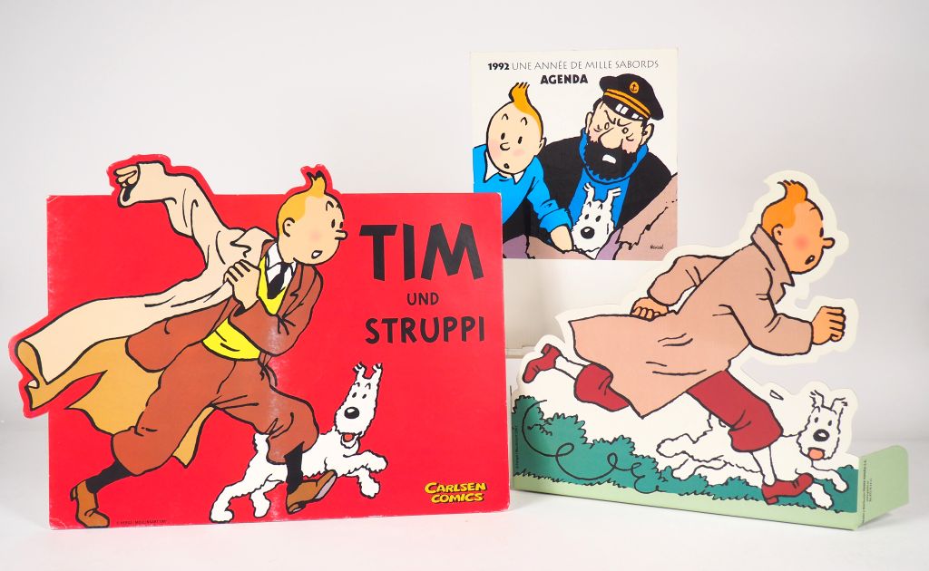 3 PLV dont 1 PLV RARE "Carlsen Comics" +1 PLV Panini Espagne Rare representant Tintin et Milou courant + 1 plv 1992 pour Agenda
