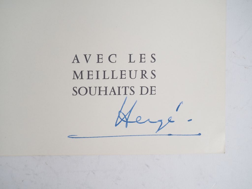 Carte de vœux 1973/1974 : Série de strips : Les bijoux de la Castafiore,Coke en stock,L'affaire Tournesol ….Signée Hergé.Parfait état .